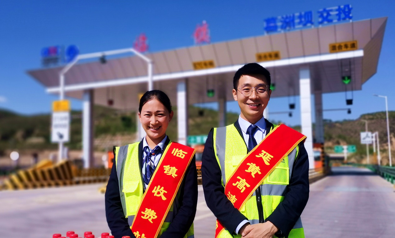 延黃高速臨鎮(zhèn)收費站兩位收費人員帶著綬帶,在炎熱天氣下熱情地為過往司乘送上礦泉水,緩解暑氣。