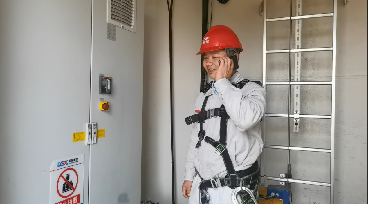 “老婆,剛下塔,都在南雄,相隔50公里,只能視頻問好,謝謝你的理解和支持?!?/span> 結束了完風機輪轂檢修,從80米塔筒下來的吳良文略顯疲憊,第一時間和家人電話保平安,說抱歉。