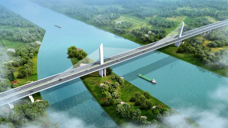 欽江特大橋施工現場全景圖