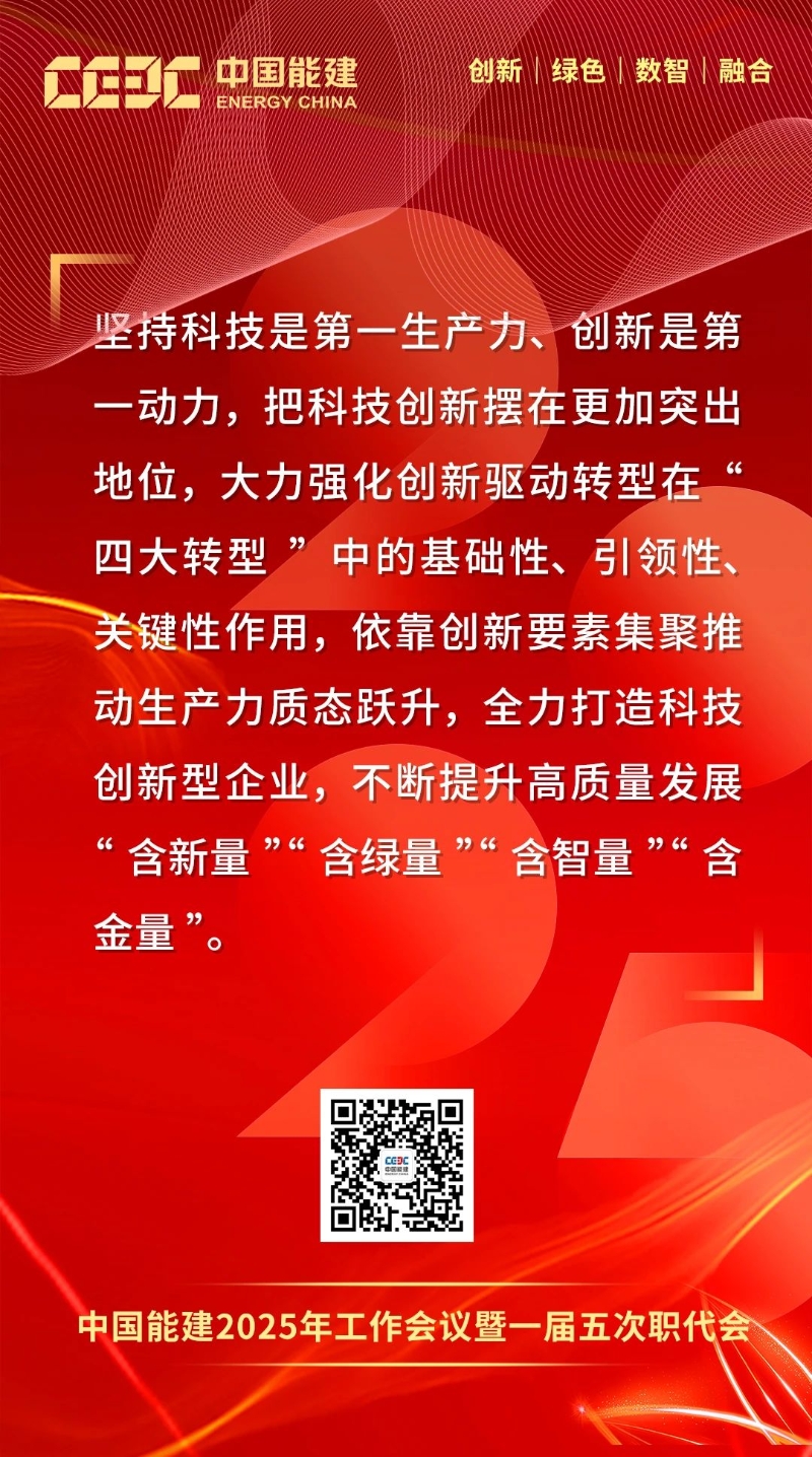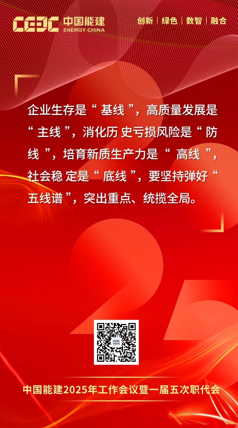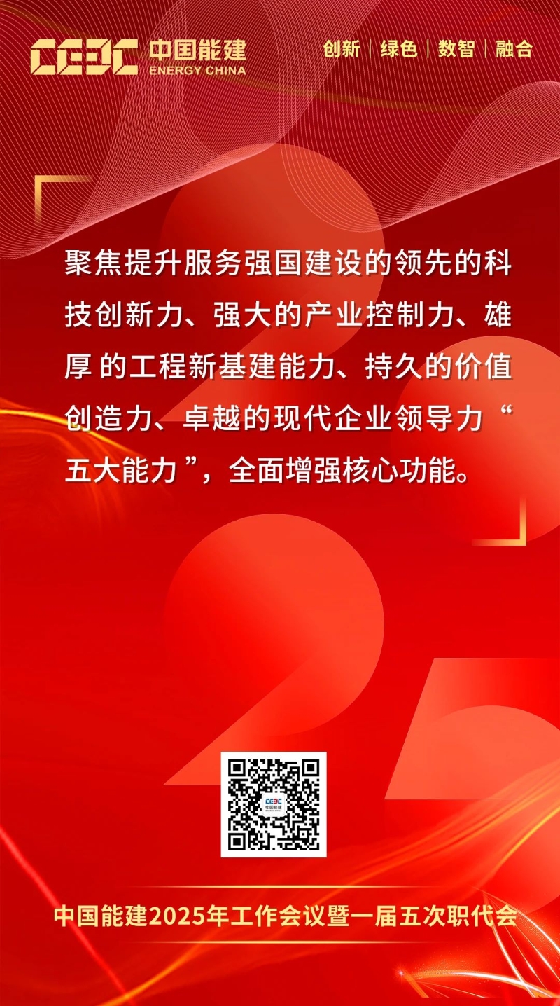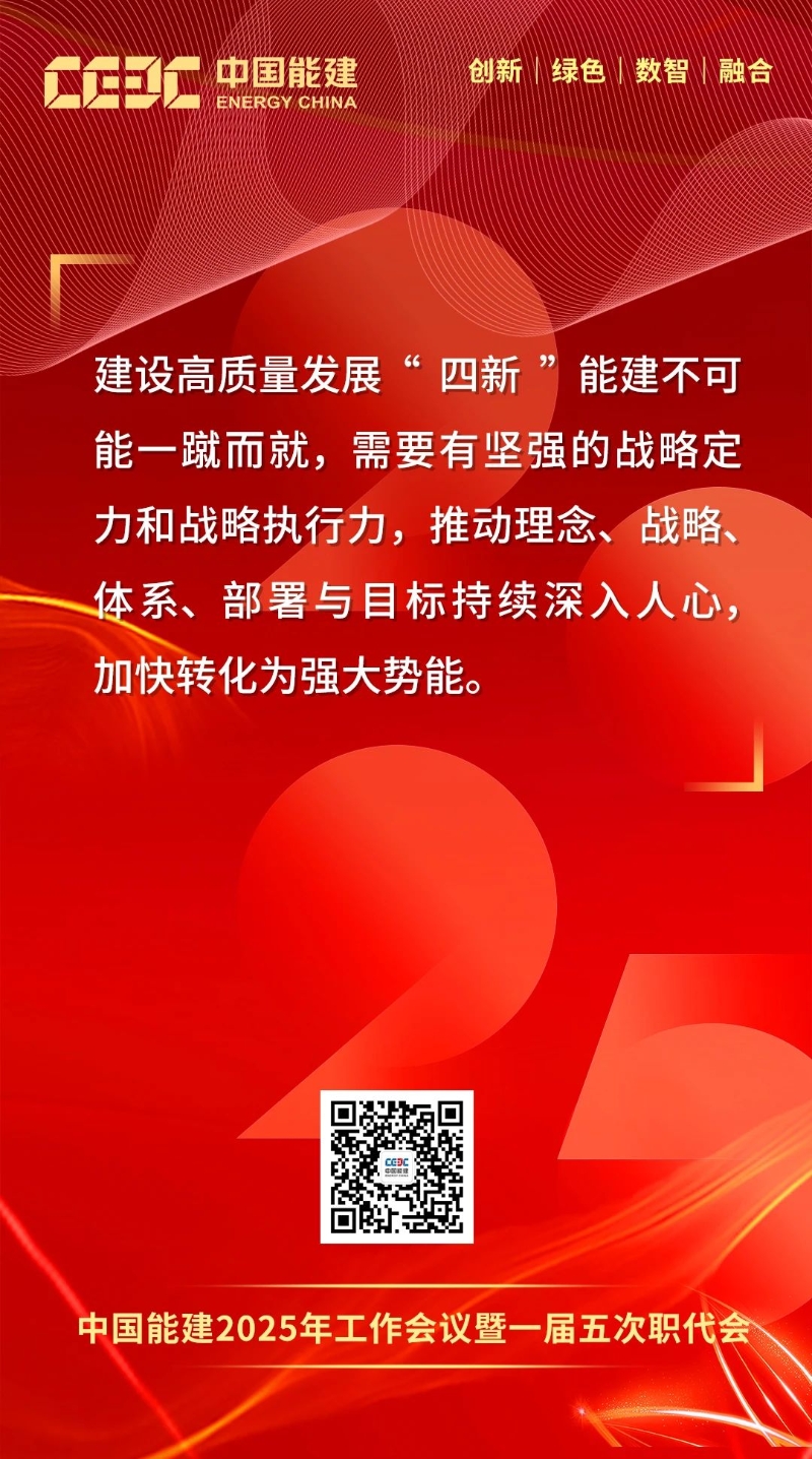 1月16日-17日,中國能建2025年工作會議暨一屆五次職代會在京召開。會上,中國能建黨委書記、董事長宋海良發(fā)表題為《保持戰(zhàn)略定力 突出科技引領(lǐng) 強化價值創(chuàng)造 狠抓落地轉(zhuǎn)化 奮力譜寫高質(zhì)量發(fā)展“四新”能建嶄新篇章》的講話。