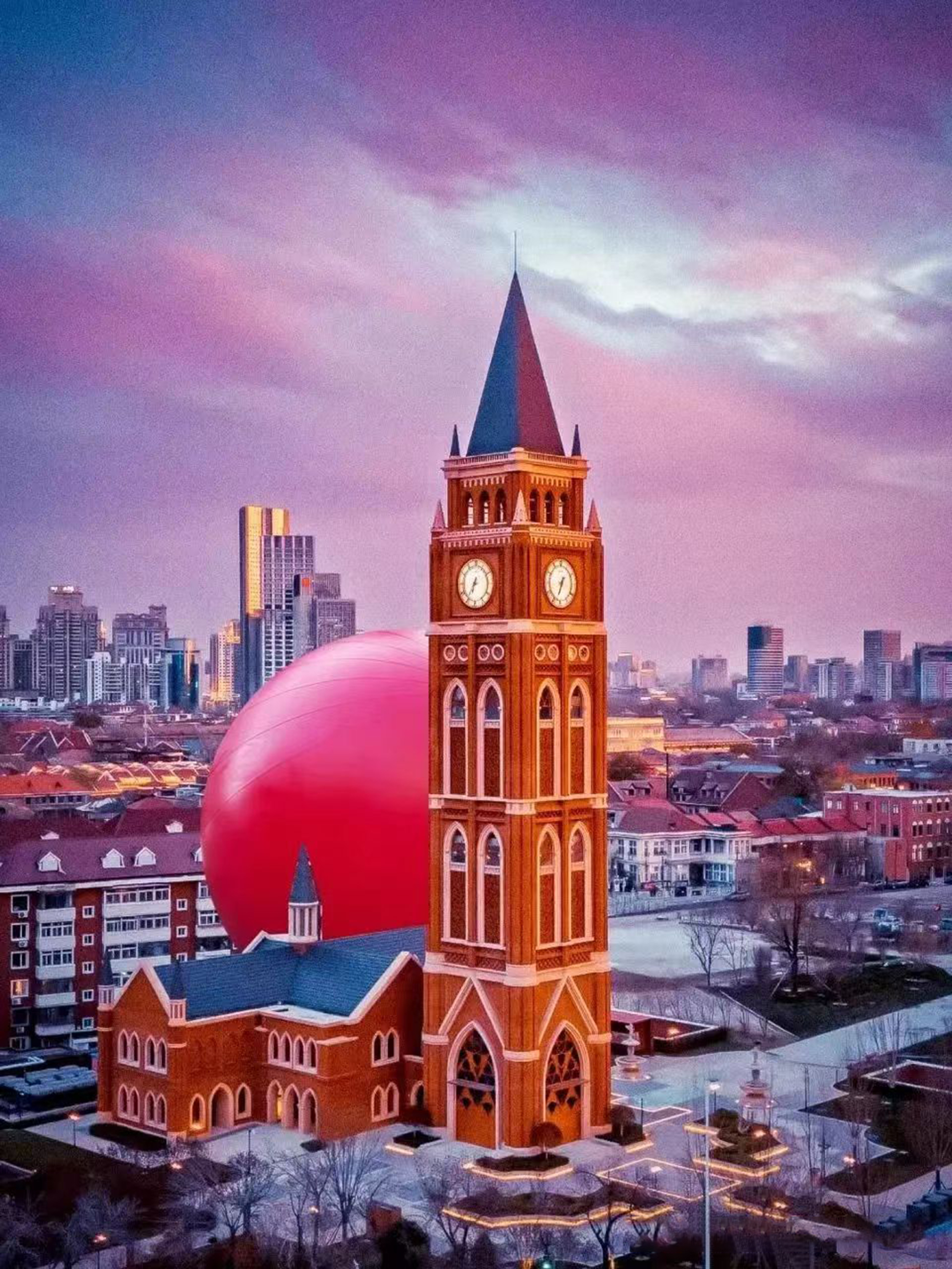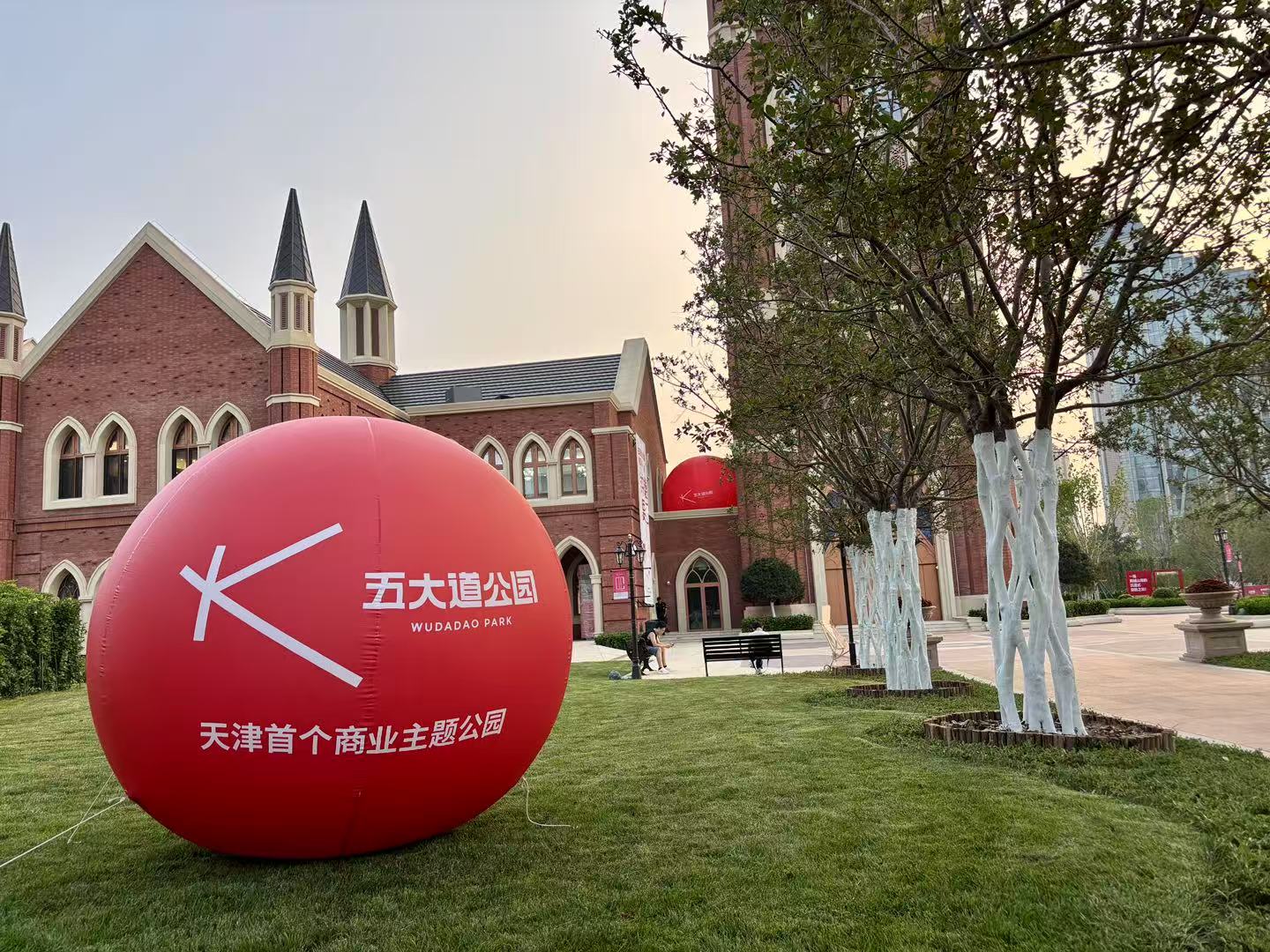 活動期間,300余只“紅色背包氣球”系著“天津之眼”“小洋樓”造型掛飾,在微風中輕搖,從鐘樓穹頂垂落的氣球串與草坪上散落的氣球群相映,成為市民鏡頭里的焦點。